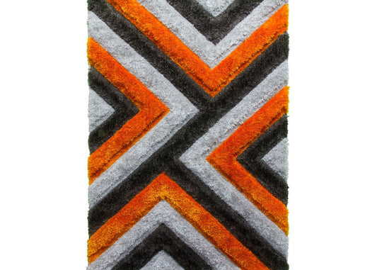 A luxurious 3D shaggy cascade rug and our thickest ever shaggy rug, with a 3D hand-carved cascading striped finish. Superlative quality, delicate contrasting grey, black and orange colours, offering a modern, elegant centre to your space.