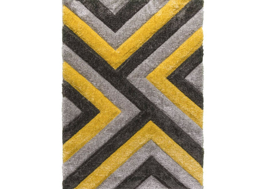 A luxurious 3D shaggy cascade rug and our thickest ever shaggy rug, with a 3D hand-carved cascading striped finish. Superlative quality, delicate contrasting grey, black and yellow colours, offering a modern, elegant centre to your space.